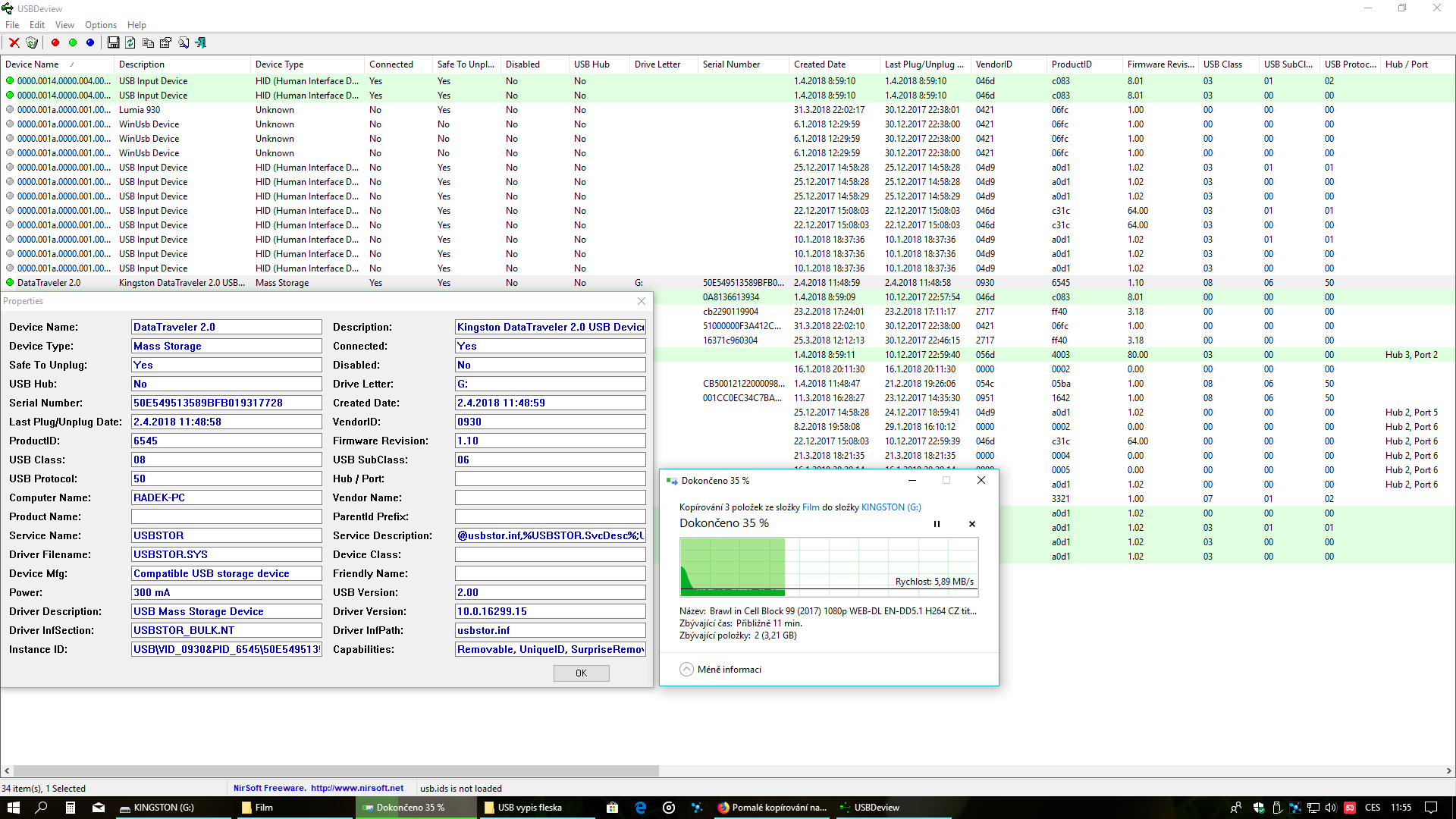 TO zní velmi zajímavě,zkusím to s tím nirsoft usbdewiew a dám ti vědět.Musím už jít do práce,ale až se k zpět tomu dostanu,písnu ti.Zatím