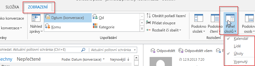 Karta Zobrazeni, klikni na ikonu "Panel ukolu" a nastav si, co chces videt