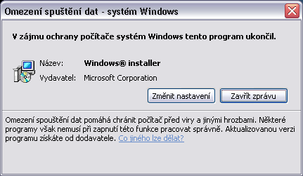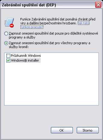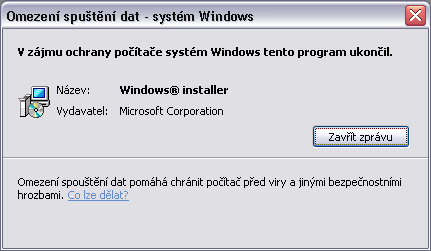 Nedaří se mi naistalovat program, když ho blokuje DEP (Data Execution Prevention).