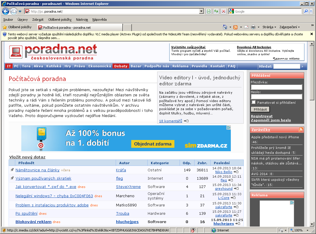 Uklidní tě tenhle obrázek? To je vše, co v prohlížeči IE mám (a stav). Funguje normálně (flash i PDF…