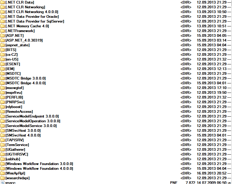 | takto vypadá normální systém = adresář pro informační soubory driverů, bez "vb skriptů" virů: