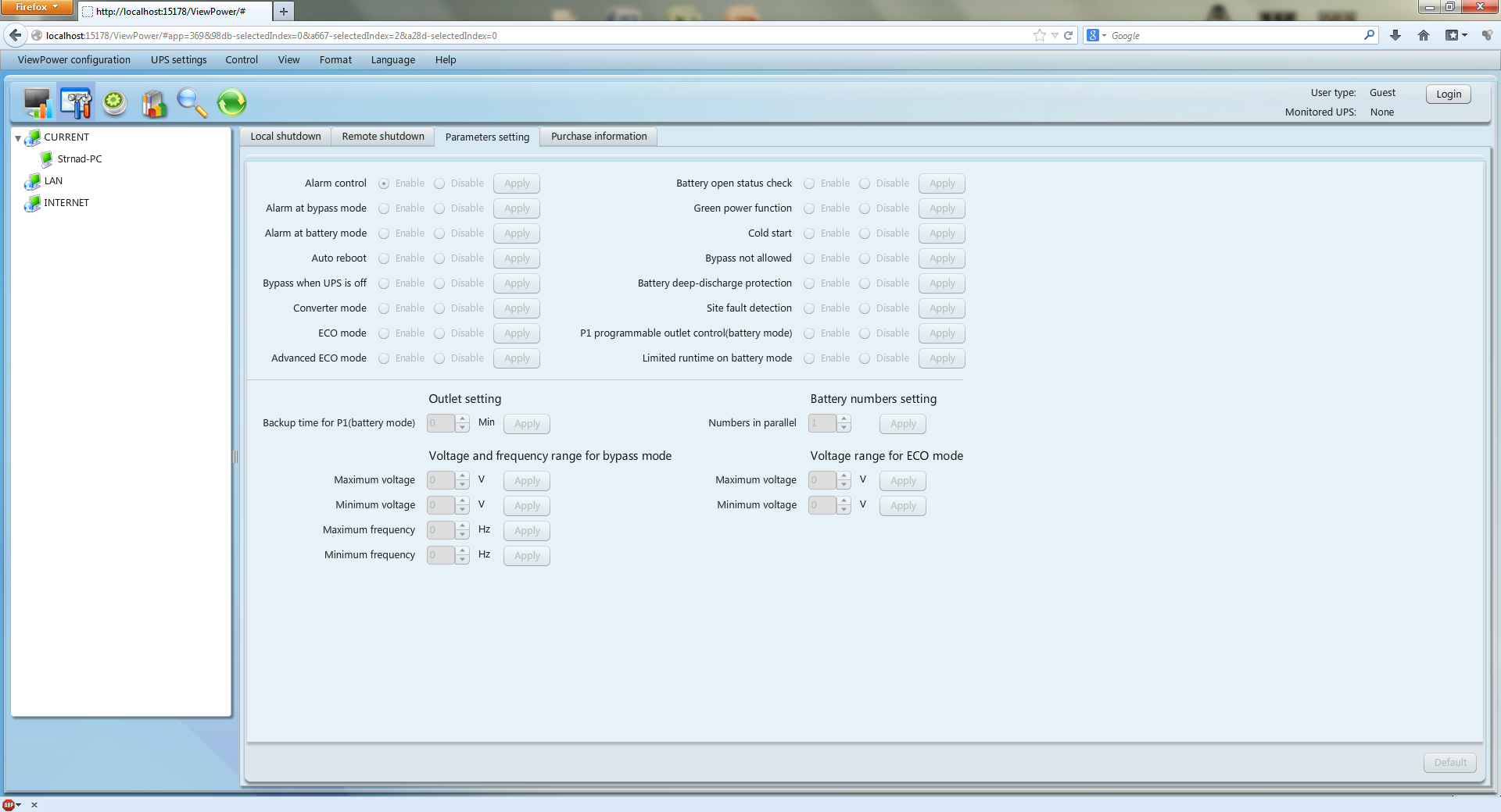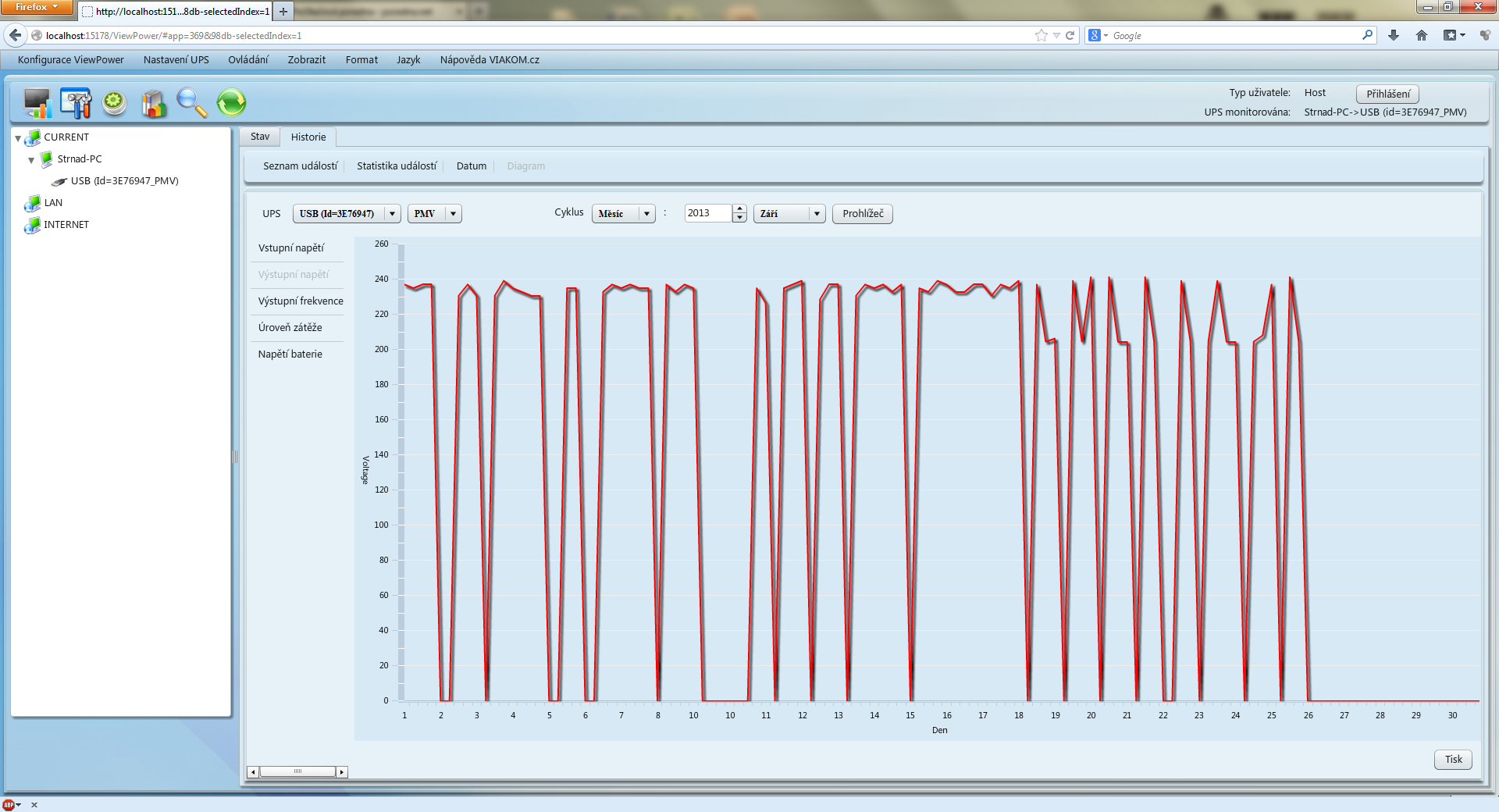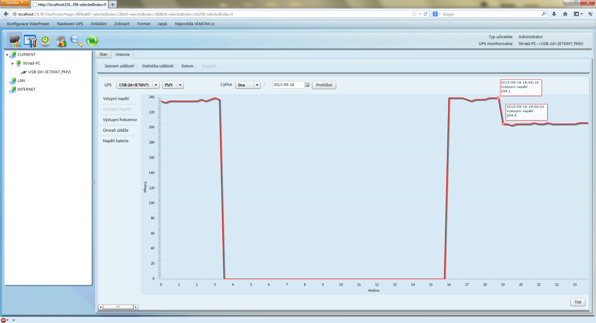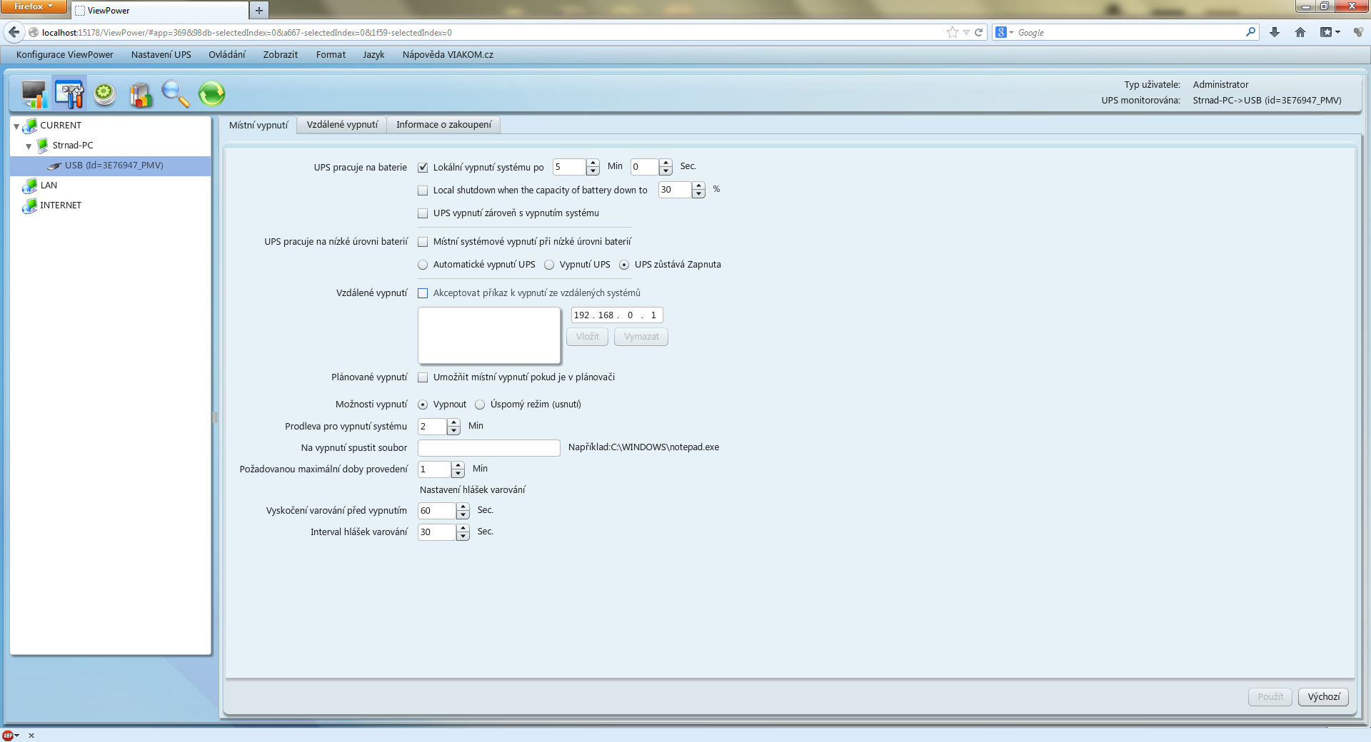 Takhle vypadá ta stránka na mém PC s připojenou UPS.