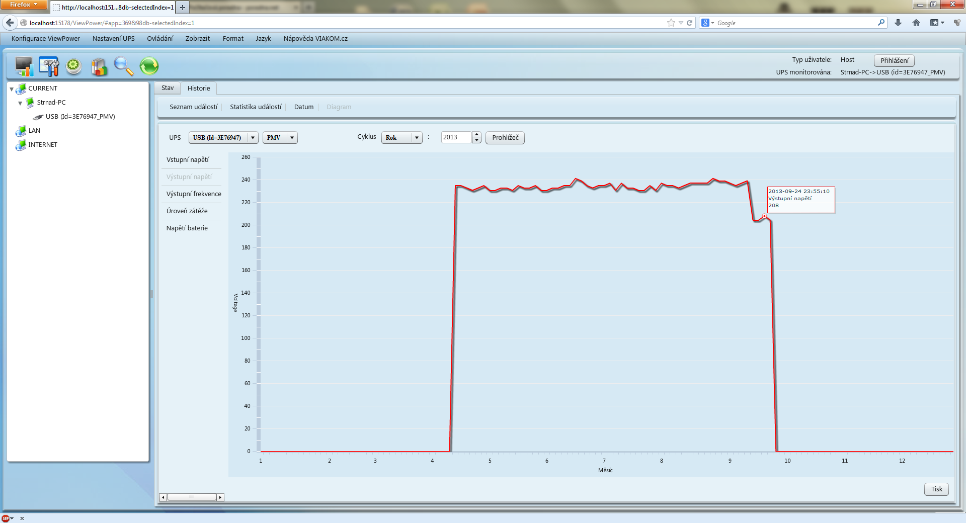 Takhle vypadá ta stránka na mém PC s připojenou UPS.