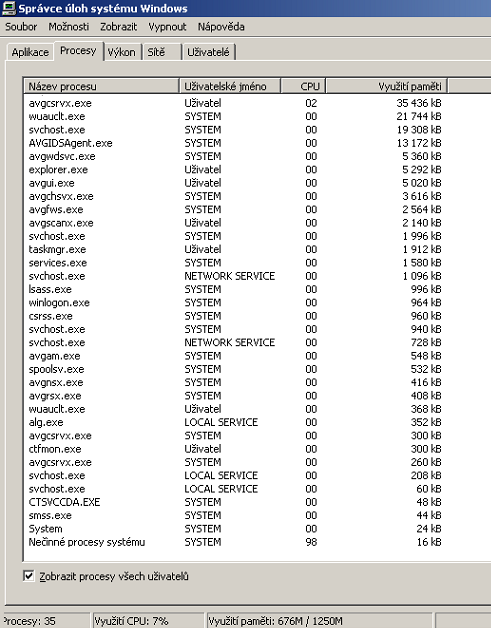 U toho CPU číslo 02 znamená vytížení 2%? Podle toho by to znamenalo, že antivir zrovna teď má 2% a nečinné procesy systému 98%? Což mi nesedí, protože celkové využití CPU je 7 %