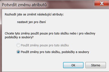 Pokud klepnete na možnost Použít změny pro tuto složku podsložky a soubory, bude atribut Jen ke čten…