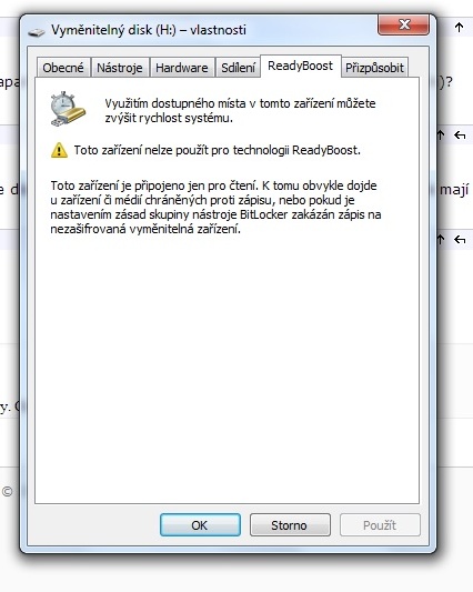 Bohužel s funkcí readyboost nelze nic dělat píše to toto viz.obr, přitom dříve bylo toto zařízení no…