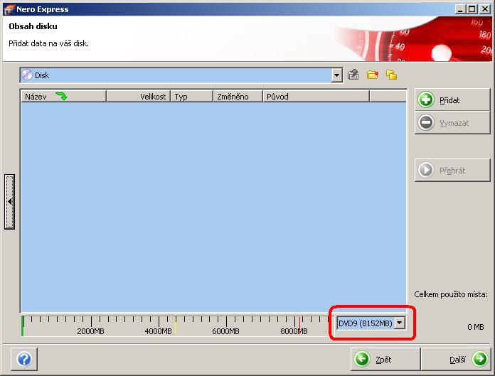 Dobrý den, chci se zeptat, jak mám vypálit dvd+r dl přes nero expres 6. Jestli to teda půjde. Pokaždé když dám přidat data, tak na nero nejde dát více než 4.7 Gb přestože v pc mám dvd s velikostí 8.5 dvd. Nevíte někdo prosím?