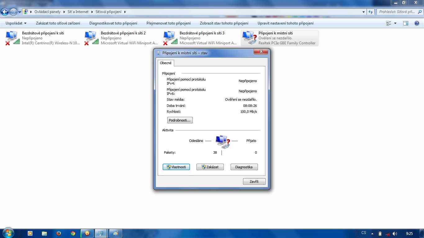 ve vlastnostech připojení drátové síťovky si zakaž na kartě ověřování hen ten protokol 802.1x jestl…
