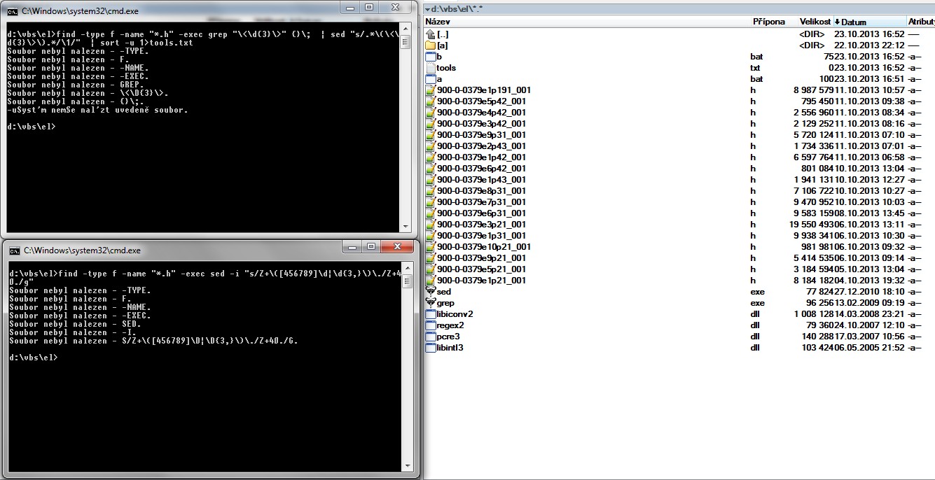 sed i grep jsem nainstaloval, pro jistotu jsem je i s knihovnami zkopíroval do adresáře se soubory, které chci projet.