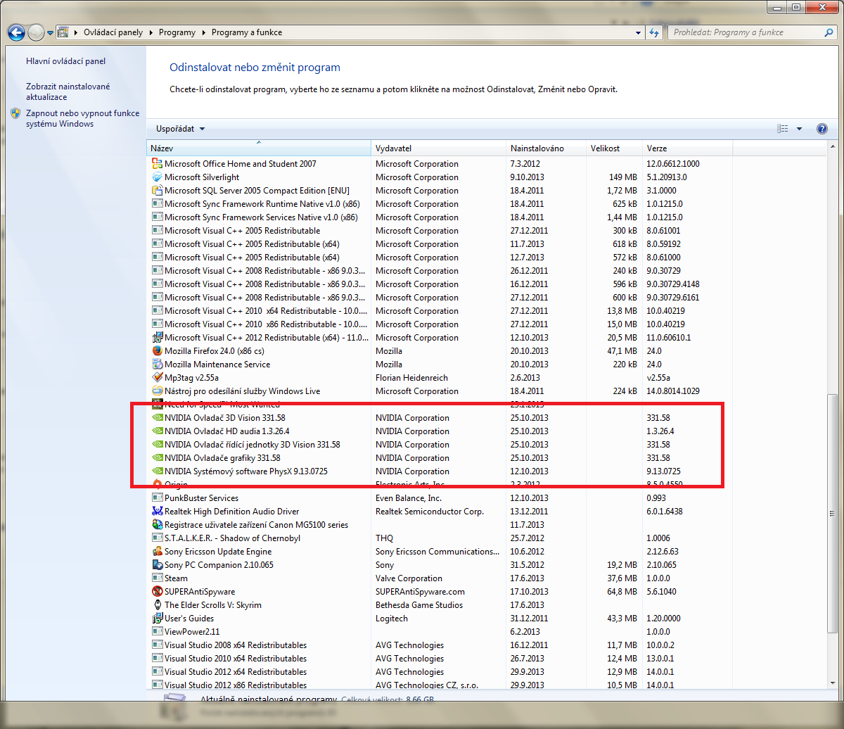 a) komplet odinstaluj všechno od nVidie