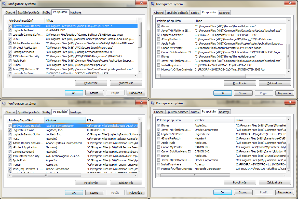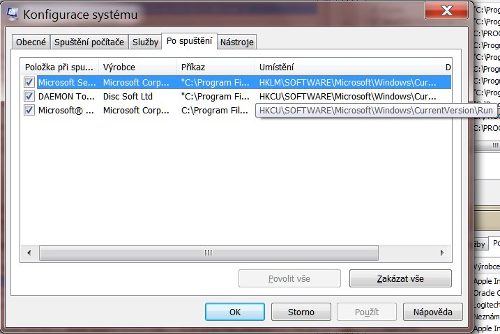Ten screen je mi platný, jako mrtvému zimník. To jako nešlo roztáhnout tu položku Příkaz, aby byla vidět cesta k souboru? Navíc tam nejsou vidět všechny programy (takže dva screeny). Máš tam toho hromadu, zakaž všechno a zrestartuj PC. Pokud ti něco bude chybět, pak si to můžeš povolit. V každém případě bych se zajímal o aplikaci, která je označená Výrobce: Neznámý.
