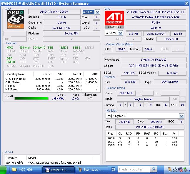 Právě nejede ta HD 2600Pro co je přidaná do AGP. (\zobrazuje, ale nemá ovladač a nedaří se mi ho tam dostat. Instalace proběhne normálně, ale nenainstaluje se. )