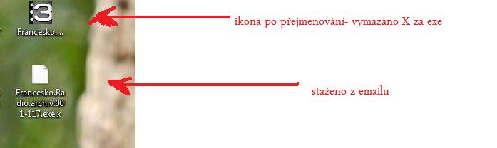 stažená složka je velká 3,96 MB. Popsal jsem obrázky. Ale asi máte pravdu,že bude lepší to přejmenovat jen na to exe a poslat zpátky. Teoreticky by kamarádka měla v pc mít vše uloženo. Jen je divný,že se jí to objevilo s tou divnou příponou exe.x....to vůbec neznám. A proto jí to asi nejde otevřít. Co myslíte?
