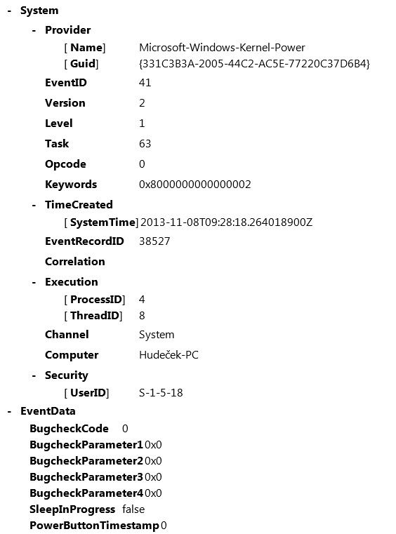 nvstreamsvc je ovladač nvidie- předcházející událost je systémový kernel power- označen jako kritický- dej sem výpis obou dvou.