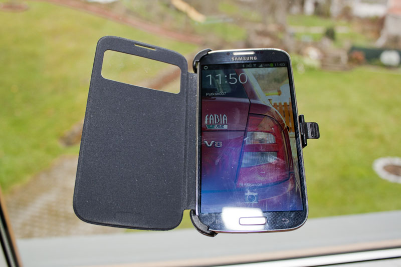 Mám Galaxy S4 s S View, vhodný držák jsem tu nenašel, tak jsem objednal z DealExtreme za 110 korun s přísavkou na sklo a nemůžu si ho vynachválit.