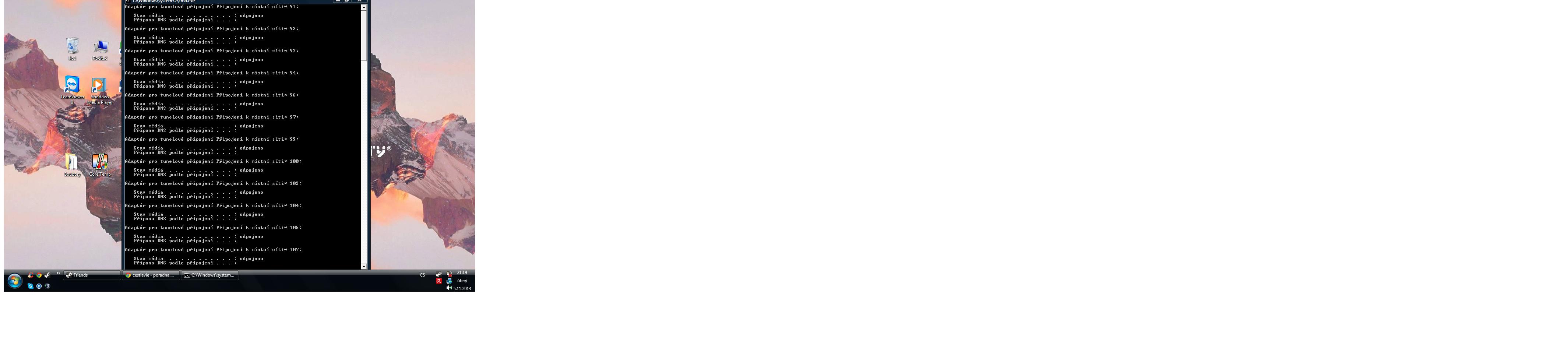 Dobrý den, chtěl bych se zeptat proč se mi po příkazu "ipconfig" v příkazovém řádku objevují informace na obrázku a ne údaje o mé IP adrese ?