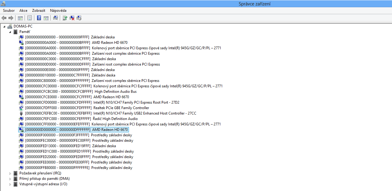 Rezervovany adresny priestor si vies pozret v spravci zariadeni, menu zobrazit resources - memory, a…