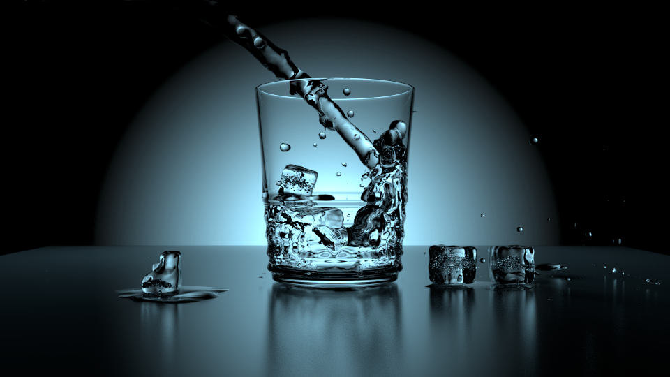 Sklenice s vodou a ten led není nic těžkého, fyziku vody to dělá Blender sám (led a ty kaluže se sklenicí jsem musel dělat sám). Práce na hodinku + rendering (je to Cycles render takže tam více času = vyšší kvalita výsledku).