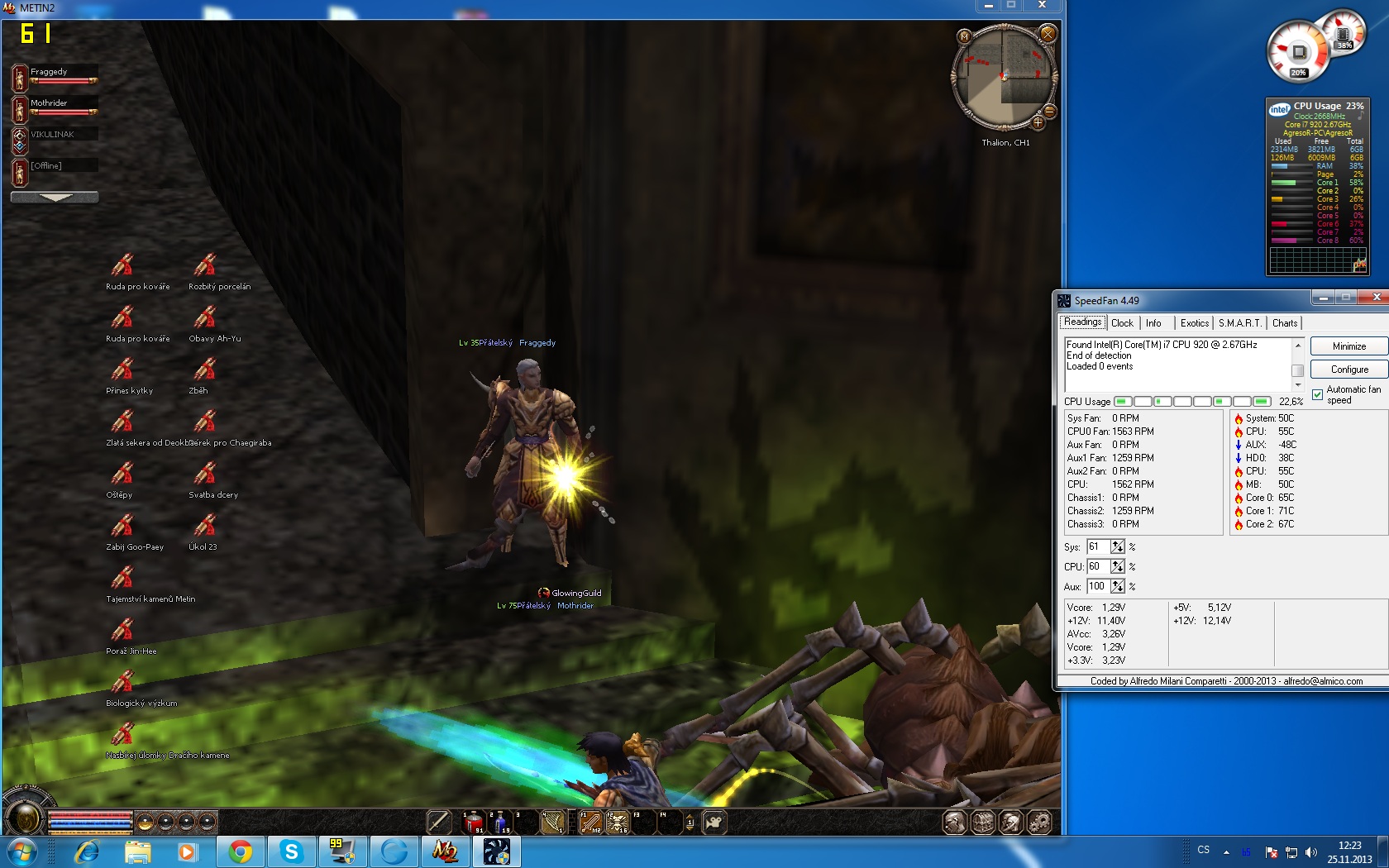 už jsem to zase zadělal, posílám nové foto při nenáročné hře metin. A jak říkám, u pc jsou krasně vě…