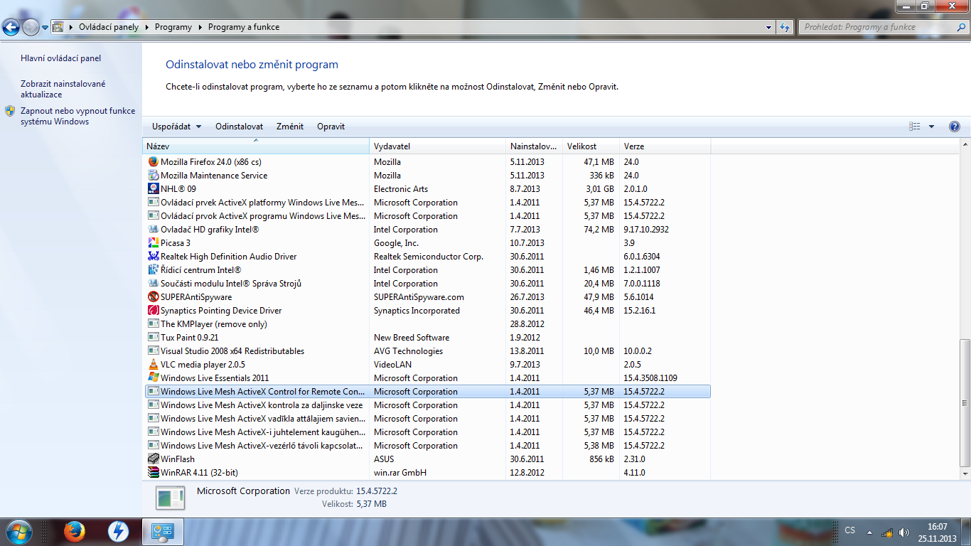 Windows Live Mesh ActiveX (v několika verzích,instalované ve stejný den.)