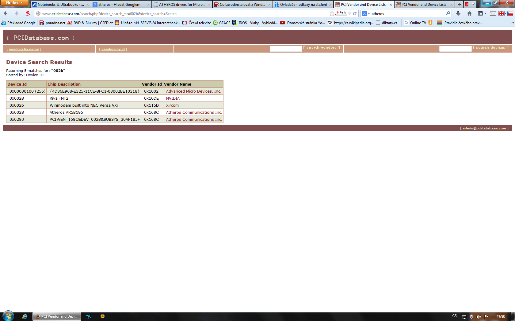 Nakonec jsem odsud stáhl 2 věci a to jen podle popisu u stažení,že u jednoho bylo pro mě podstatné HardwareID=PCI\VEN_168C&DEV_002B