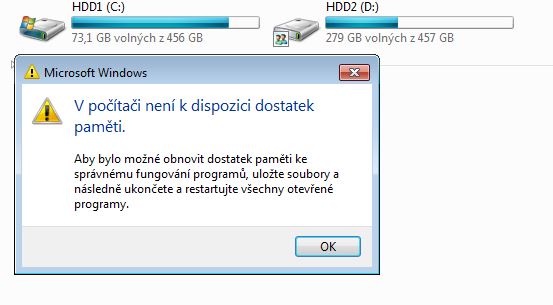 Při spuštění jakéhokoliv programu mi asi po pěti minutách vyskočí hláška málo místa na disku a ukončí mi daný program(asi po dvou varování).Zkoušel jsem restartovat všechny programy jak to říká v hlášce ale nic, taky jsem zkoušel CCleaner, vymazat hry filmy a zbytečné programy i když myslím že volného místa mám dostatek.