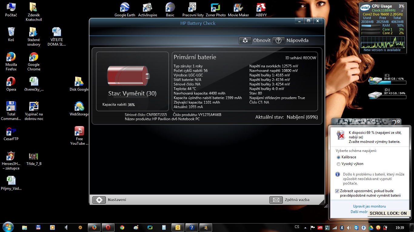 potřebuji radu. Zakoupil jsem si novou baterii na výše uvedený notebook. Marně jsem doufal, ze stačí jen vyměnit baterii a notebook vydrzi dele. Takze, baterka vydrzi stejne kratkou dobu a stale mi to píše at zvazim koupe nove baterie. Na ofiko stránkach HP sem našel návod jak zkalibrovat baterii. Jenže: