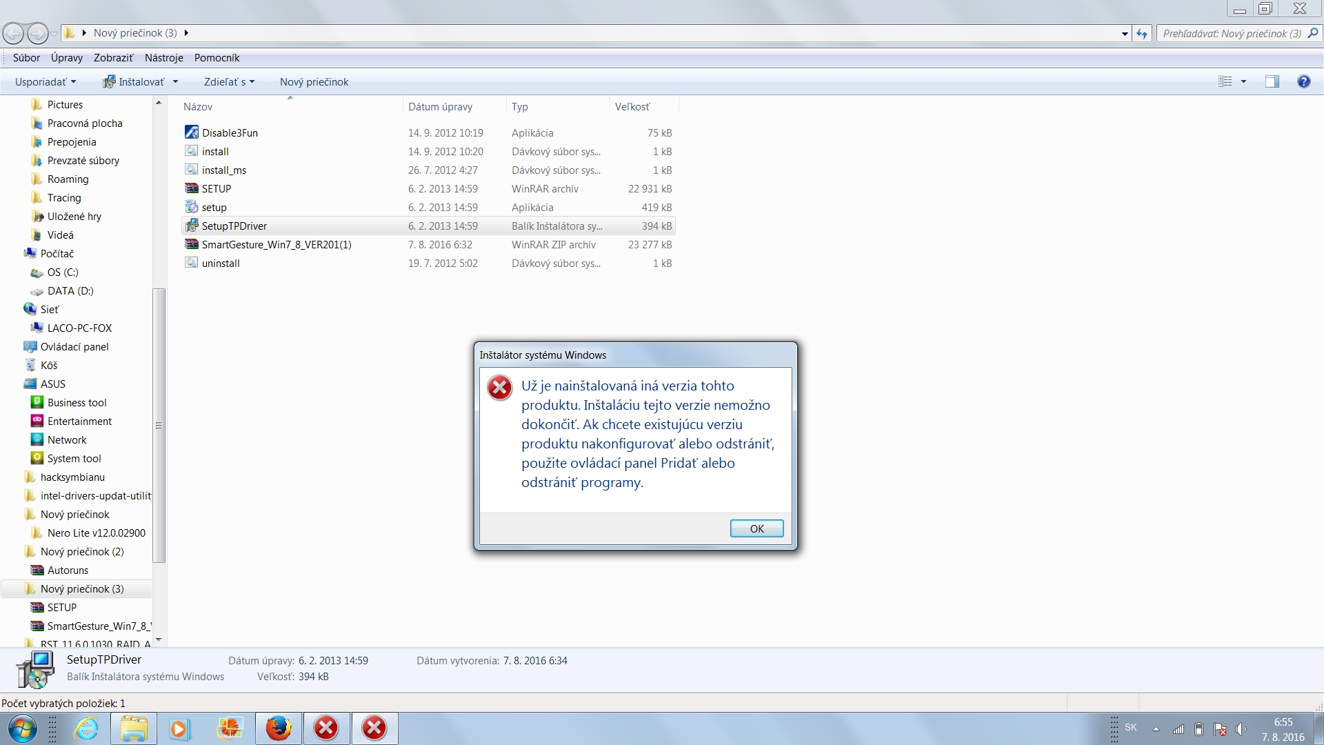 Tak som si stiahol driver na touchpad. Ked ho chcem nainstalovat, vypíše mi toto /v prílohe/.