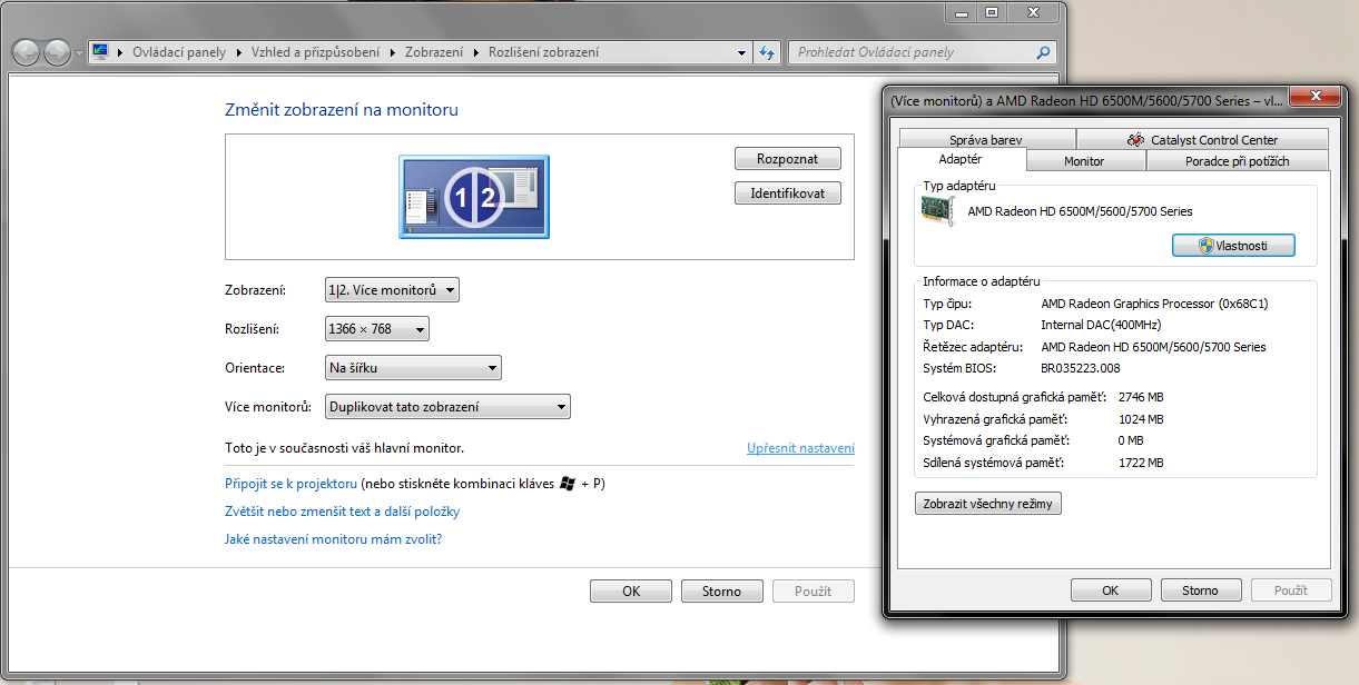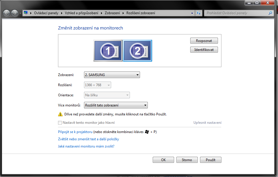 A zase když se chci podívat na Rozlišení zobrazení (vystrizek5), tak tam mi to ukazuje pouze 1 monitor..