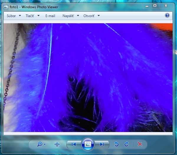 Pravdepodobne to bude naozaj súvisieť s tou správou farieb. Skúšala som fotku upraviť v Picase (zobrazila sa správne) a klikla som tam na možnosť "použiť správu farieb". Hneď sa tam objavil ten fialový efekt. Takže zrejme niektoré programy zobrazujú fotky už priamo s tým fialovým efektom, na základe nejakých nastavení. Bohužiaľ však neviem, ako to nastaviť správne. Nechcem tam niečo pokaziť, takže neviem presne čo spraviť. Ale určite to bude niečo s tými farebnými profilmi.