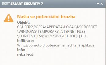 odinstaluješ eset, který tu hrozbu neumí odstranit,