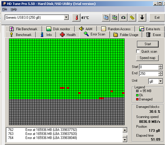 Můžeš sem poslat ještě SMART údaje disku, ale 30% je totálka.