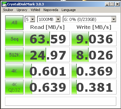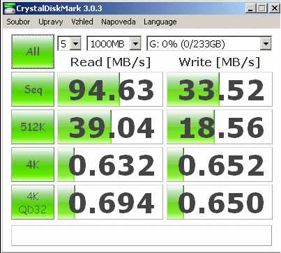 Tak, jsem tu rychlost proměřil ještě jednou a teď to zase dopadlo lépe bez jumperu. Nevím, jestliže… poslední