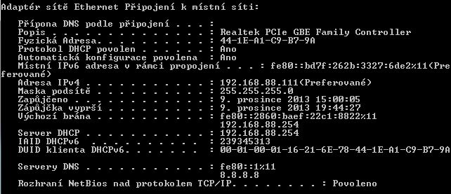 Adresa IPv4 . . . . . . . . . . . : 192.168.88.111(Preferované)