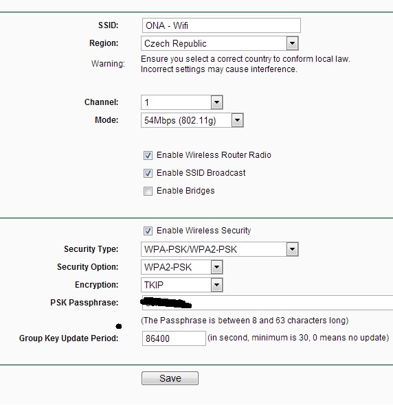 Je mi záhadou, že při pokusu připojit se mi to nevyhodí tabulku s žádostí o heslo. Sousedova wifi to udělá. (ovšem heslo pochopitelně neznám) Zkusil jsem si tedy na AP od O2 vytvořit svojí druhou wifi, kterou jsem nechal nezabezpečenou a na té to normálně běží. Nemůže to být něco s šifrováním, které by stará wifi prostě neuměla? - přikládám nastavení AP.