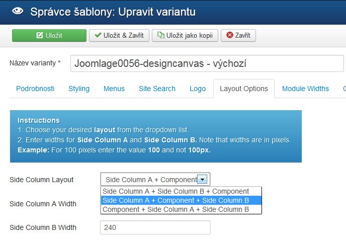 Máš tam trochu zmatek. Nejdřív si zvol správné rozmístění sloupců: menu - obsah - menu (ty tam máš menu - menu - obsah). Pak ti vyniknou možnosti, které budeš mít pro vložení do určité pozice (contenttop-a až contenttop-c) + sloupec vpravo: