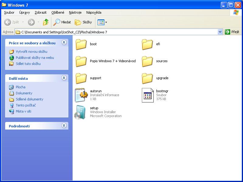 tak si z těch souborů udělej bootovací USB flašku, stačí k tomu příkaz diskpart z Win7/Vista a ty so…