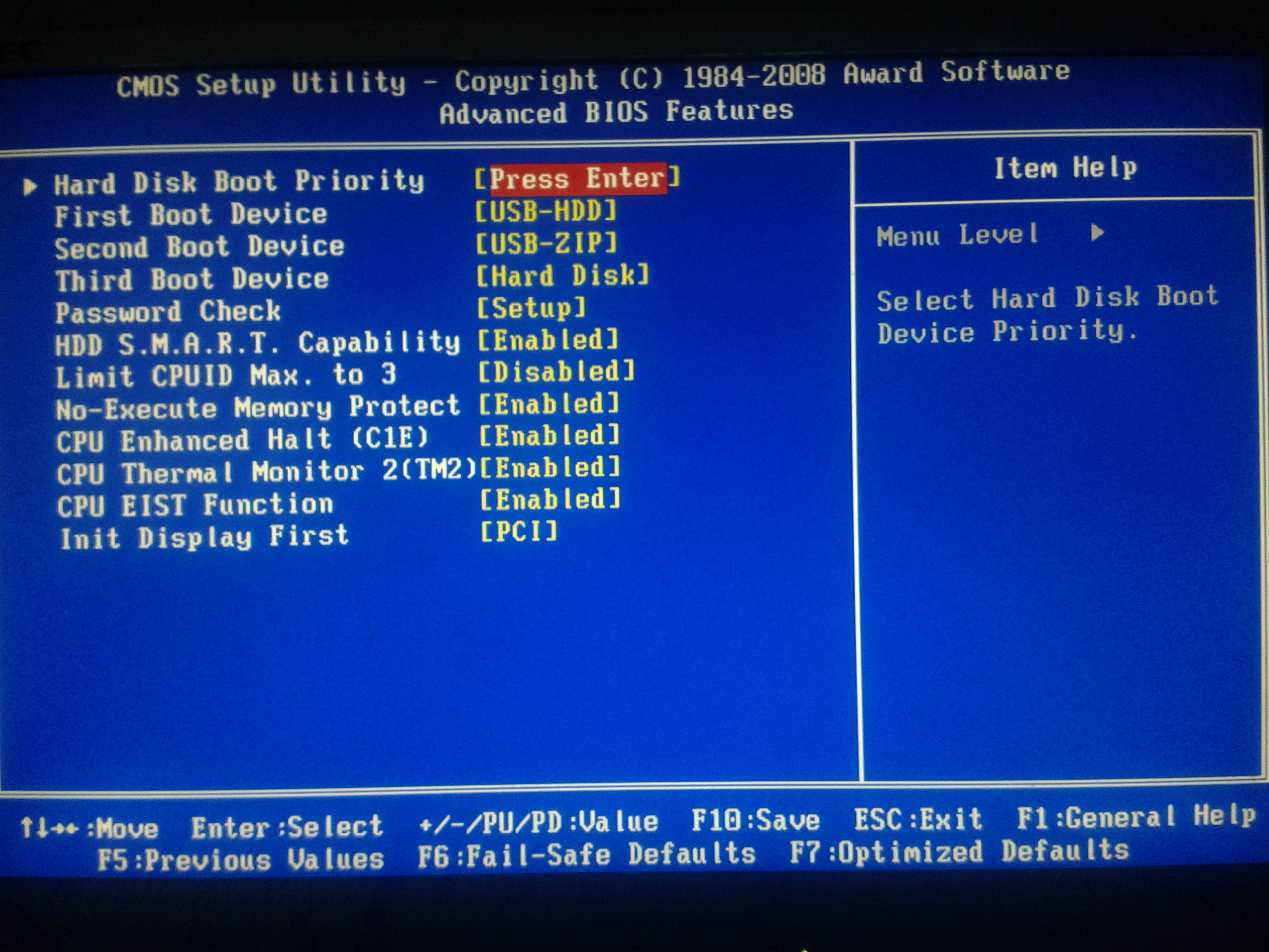 Nastavím boot z USB-HDD či USB-ZIP a sekne se mi to na této obrazovce: