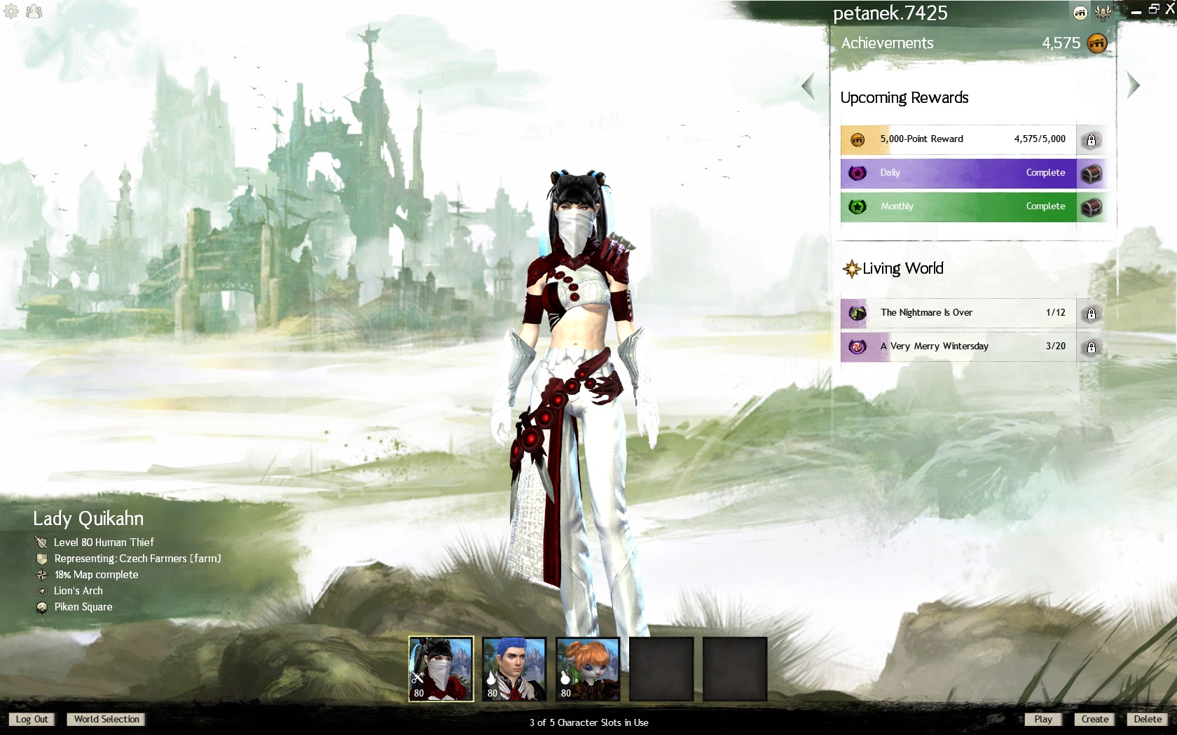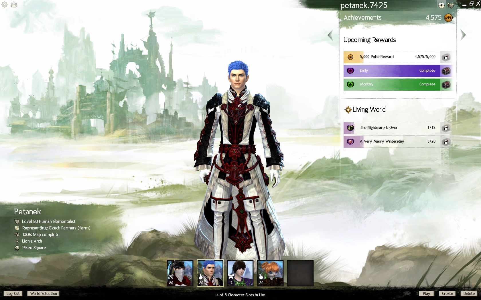 Vyměním Guild Wars 2 ACC (Email přehození všechno) za Call of Duty Ghost nebo Medal of Honor nebo Battlefield 4. (Mám top ACC můžu poslat scrreny to equip 3x 80 level plno Setu prachy) Jedinečné tituly (Nejdou už zístak) A spoustu dalšího. Důvod výměny Zdravotní stav - Závislost na PC. (je tam toho tolik ze nevím kde začít. Možno všechno vysvětlit + dokázat videa atd.