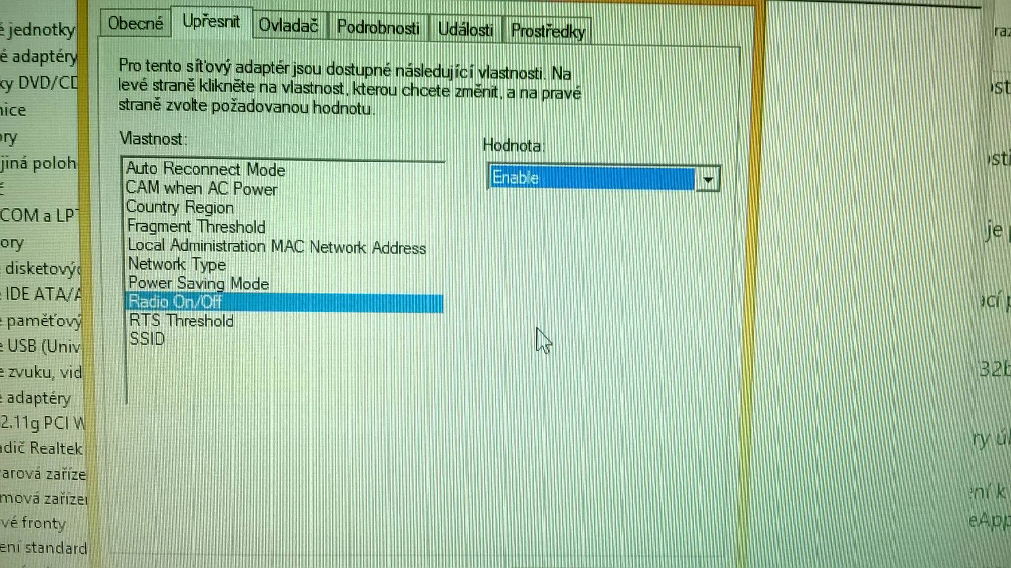 pohodlné zapínání klávesovou zkratkou/přepínačem mají jen notebůů. přídavné adaptéry pouze přes správce zařízení - karta je ve správci zařízení, vysílání enabled. je však možné, že si ten obrázek vykládám špatně - že to enabled znamená jen možnost sw řízení, disbled by jen znamenalo, že vysílání pojede furt.