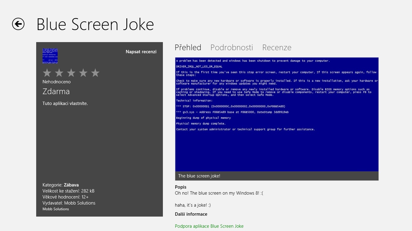 mám to ve Win8 jako app jmenuje se to Blue Screen Joke :-D