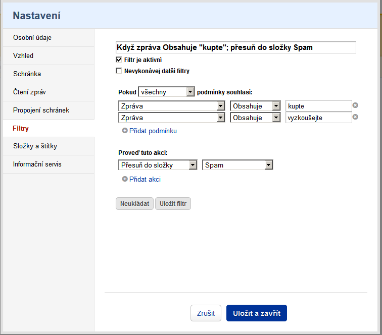To jo, podmínek v tomto formátu mám nastaveno už asi 30 a zbavilo mě to každodenní záplavy spamů. Al…