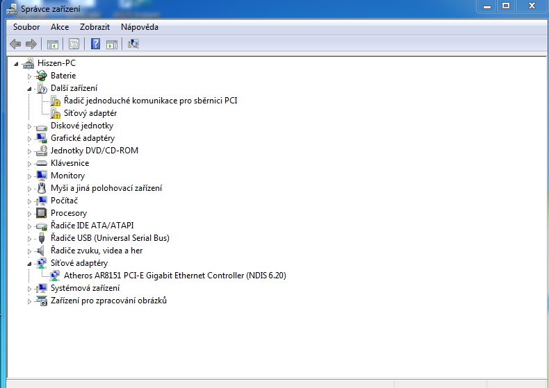Ve Správci zařízení rozklikněte ty "síťové adaptéry" - co je tam nainstalováno?