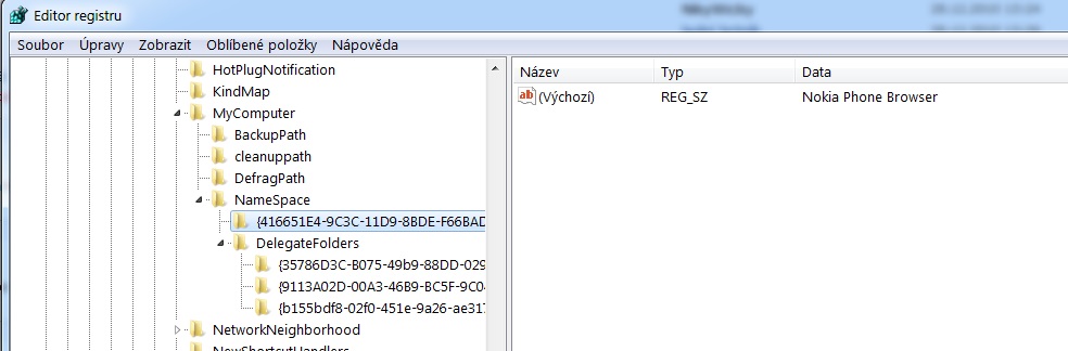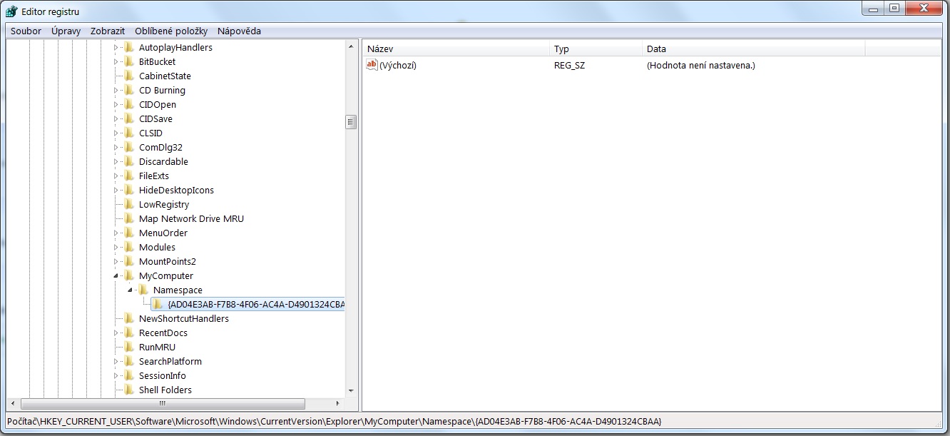 A vypadá to, že to je ono, mám tedy zkusit smazat tu složku v HKEY_Current_User\SOFTWARE\Microsoft\Windows\Curre ntVersion\Explorer\MyComputer\NameSpace\, nebo ten registr v té složce ?