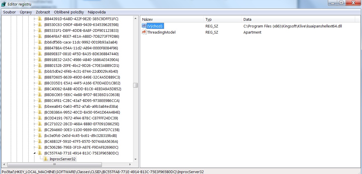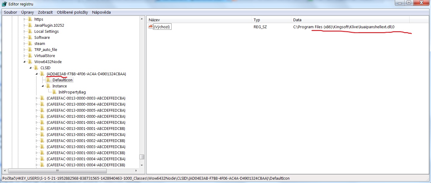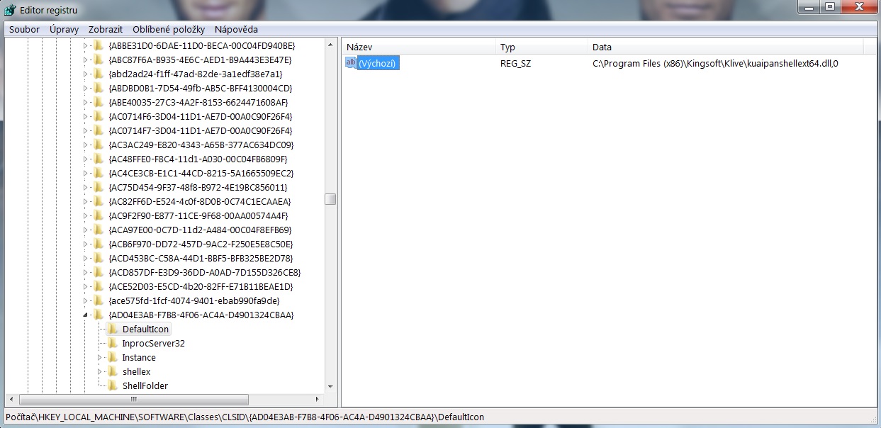 můžeš ten řetězec ad04e3... vyhledat ještě pod některým clsid v registrech, co znamená.