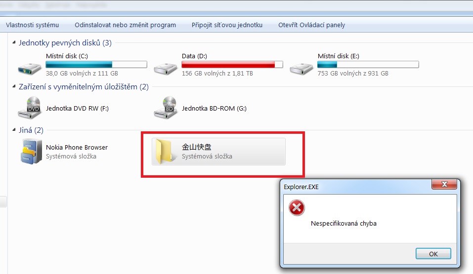 A vypadá to, že to je ono, mám tedy zkusit smazat tu složku v HKEY_Current_User\SOFTWARE\Microsoft\Windows\Curre ntVersion\Explorer\MyComputer\NameSpace\, nebo ten registr v té složce ?