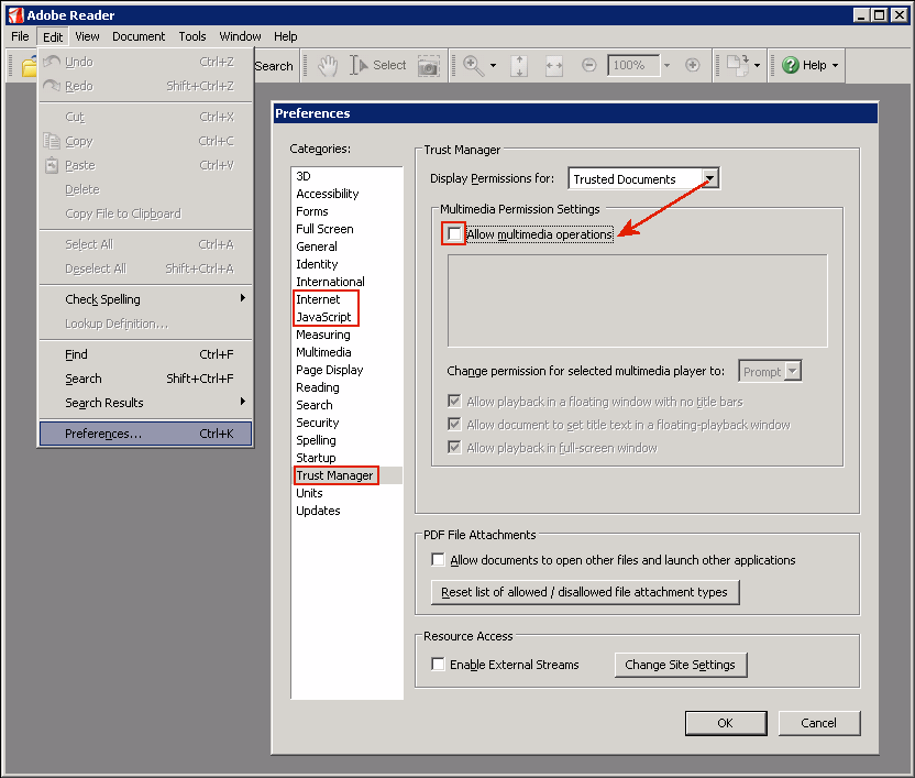 - pro adobe reader vždy nastavuju: zákaz spouštět v okně prohlížeče, zákaz používat javascript, zákaz multimediálních doplňků z trusted i untrusted dokumentů. v prohlížeči mám předvoleno: pdf dokument neotevírat/uložit na disk.