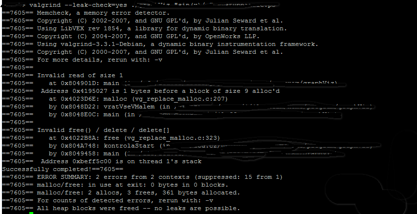 Uvolňuješ víc paměti, než sis alokoval. Počet malloc a free by měl být stejný. Navíc tam máš nějaké…