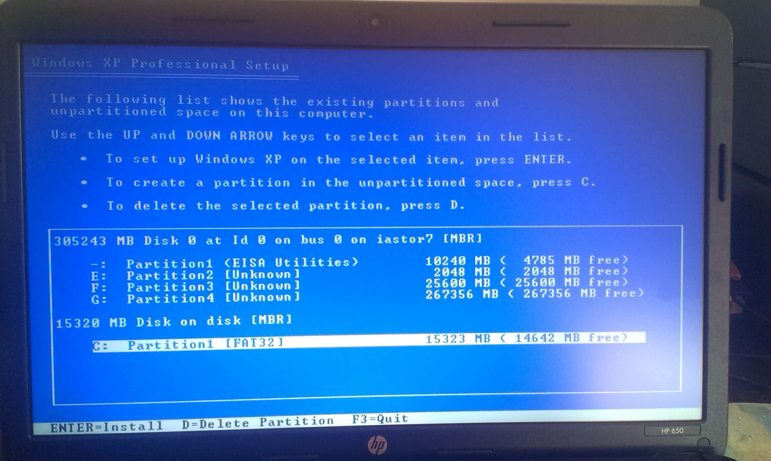 ak ti fleška figuruje ako C oddiel, reštartni a spusti inštaláciu znovu. Fleška nesmie byť C.