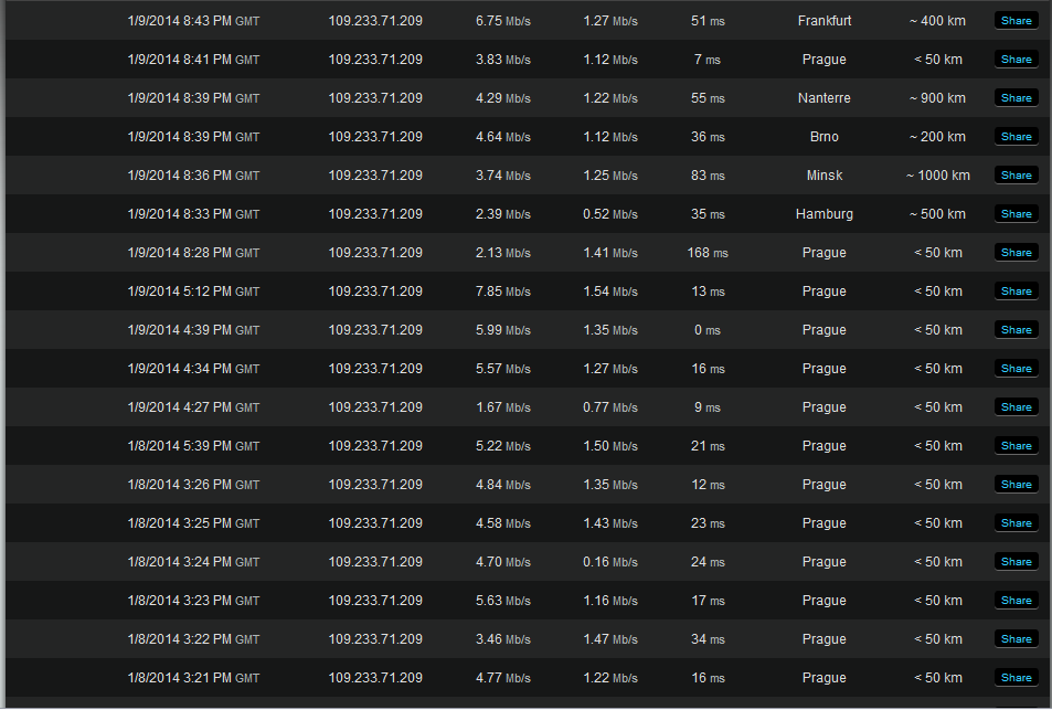 Celkem často vystřelí na 800ms a pak spadne celej net. I když koukám, že ve hře mám 250ms stálejch a potom hned změřim na speedtest.net a tam skoro všude po Evropě se neukáže víc jak 50-60ms.